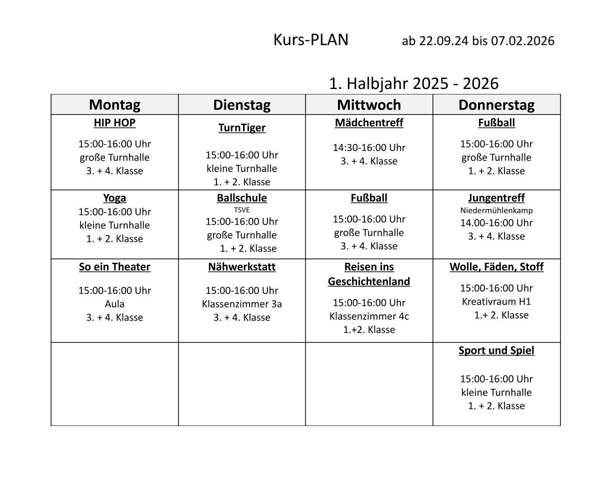 Die OGS wünscht viel Freude an dem Kursangebot.